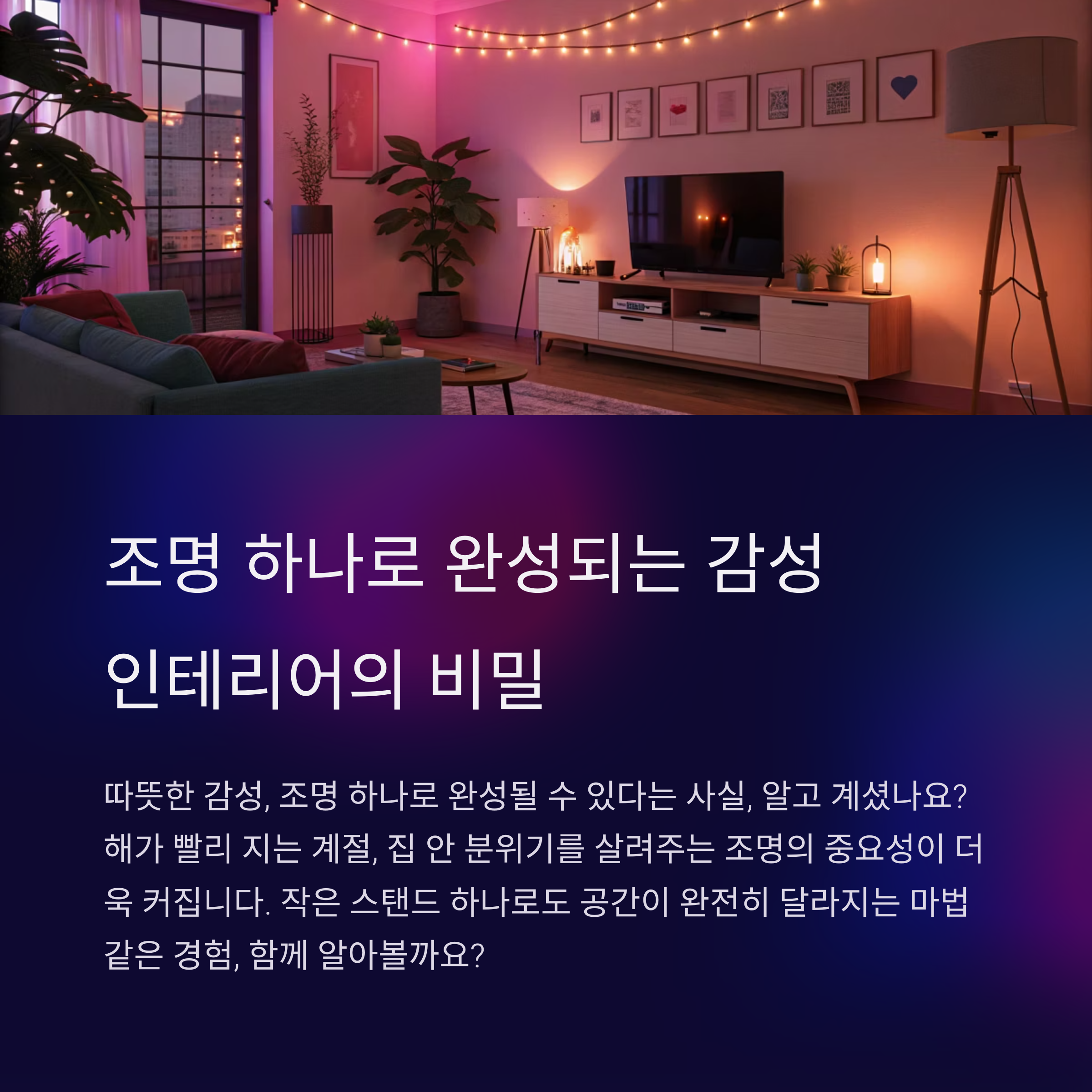 여러분도 느끼셨죠? 조명 하나만 바꿨을 뿐인데, 공간 전체가 따뜻하고 감성적으로 바뀌는 마법 같은 경험. 인테리어에 정답은 없지만, 감성적인 분위기를 원한다면 조명만큼은 꼭 신중하게 선택해보세요. 저는 조명 하나 바꿨다가 집에 있는 시간이 훨씬 좋아졌거든요. 여러분도 지금 이 순간, 조명으로 감성을 채워보세요. 혹시 고민 중인 공간이 있다면 댓글로 남겨주세요! 같이 아이디어도 나누고 조명 추천도 드릴게요