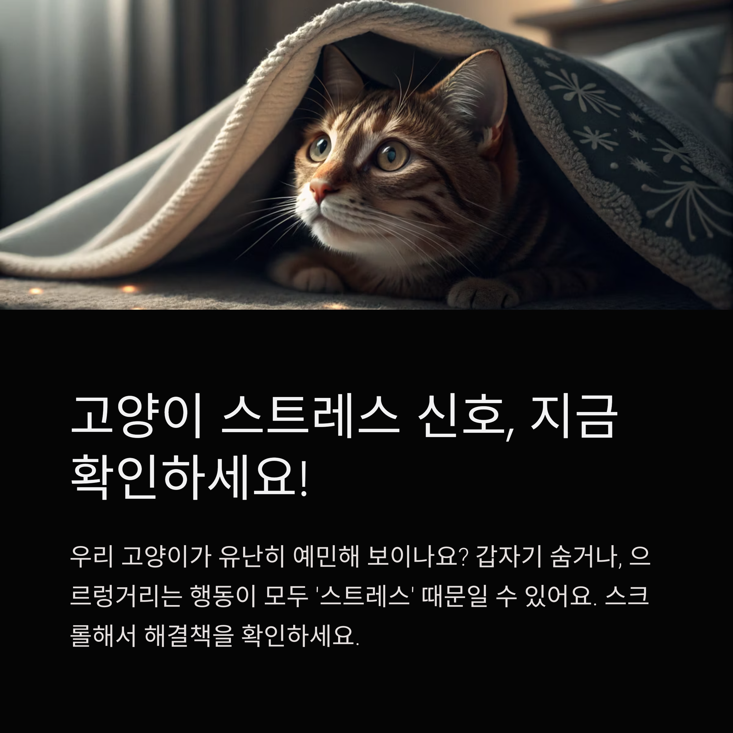 안녕하세요, 반려묘 집사 여러분! 저도 한 마리 고양이와 함께 살고 있는 평범한 집사예요. 사실 얼마 전까지도 저희 고양이가 왜 그렇게 자주 숨고, 갑자기 뛰쳐나가며 으르렁거리는지 몰랐어요. 병원에서도 특별한 이상은 없다고 하더라구요. 그런데 알고 보니 이 모든 게 '스트레스' 때문이었더라구요. 그 후로 제가 하나하나 알아보고 실천한 꿀팁들을 오늘 여러분과 공유하려 해요. 저처럼 처음엔 몰랐던 분들이라면 꼭 끝까지 읽어보시길 추천드려요!