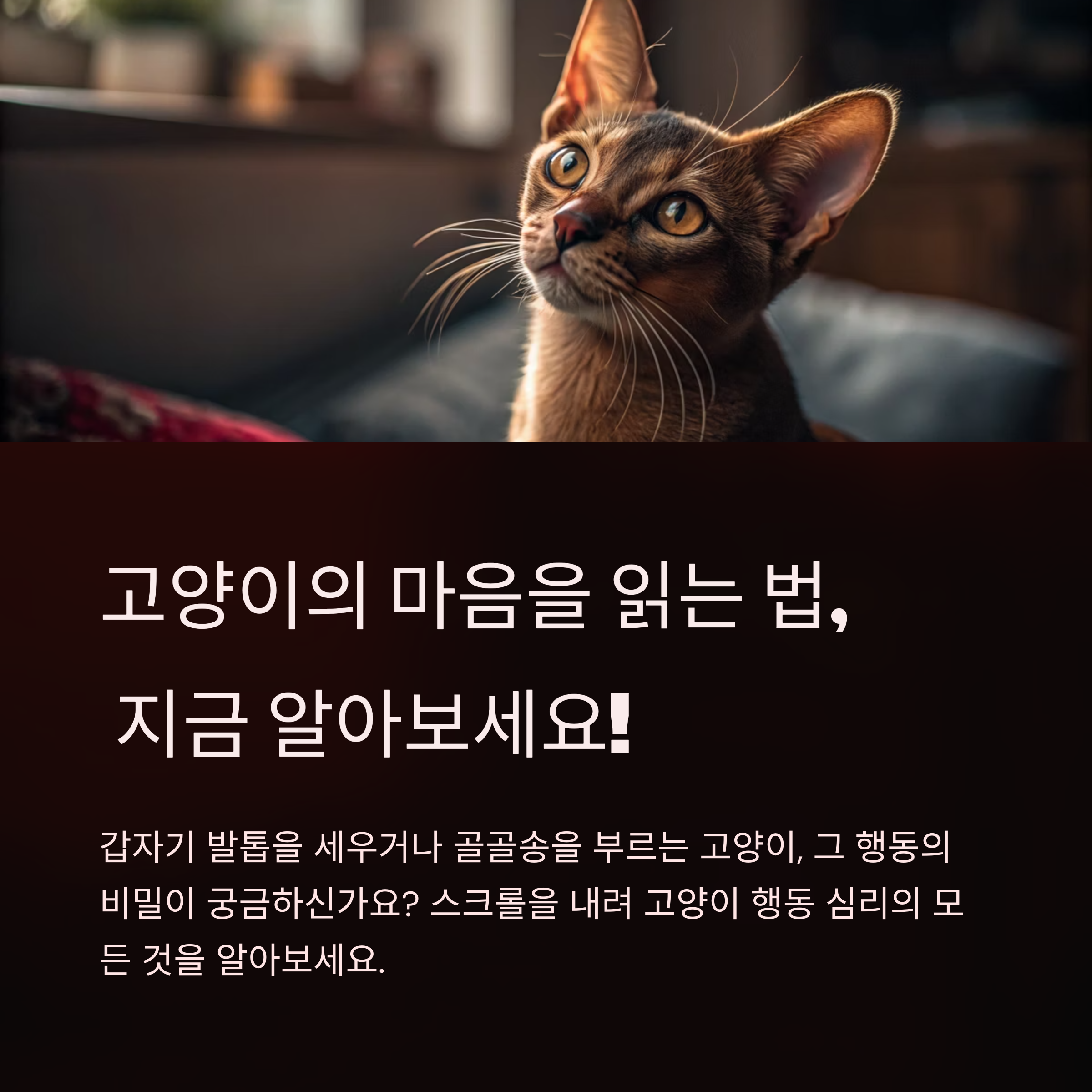 안녕하세요, 여러분! 고양이를 키울 때만 해도 아이들이 왜 갑자기 숨고, 갑자기 애교를 부리는지 도통 이해할 수 없었어요. 그래서 공부도 많이 하고 경험도 쌓으면서 고양이 행동 심리를 하나씩 알아가고 있는데요, 혹시 여러분도 고양이의 마음속을 들여다보고 싶으신가요? 그럼 시작해볼게요!