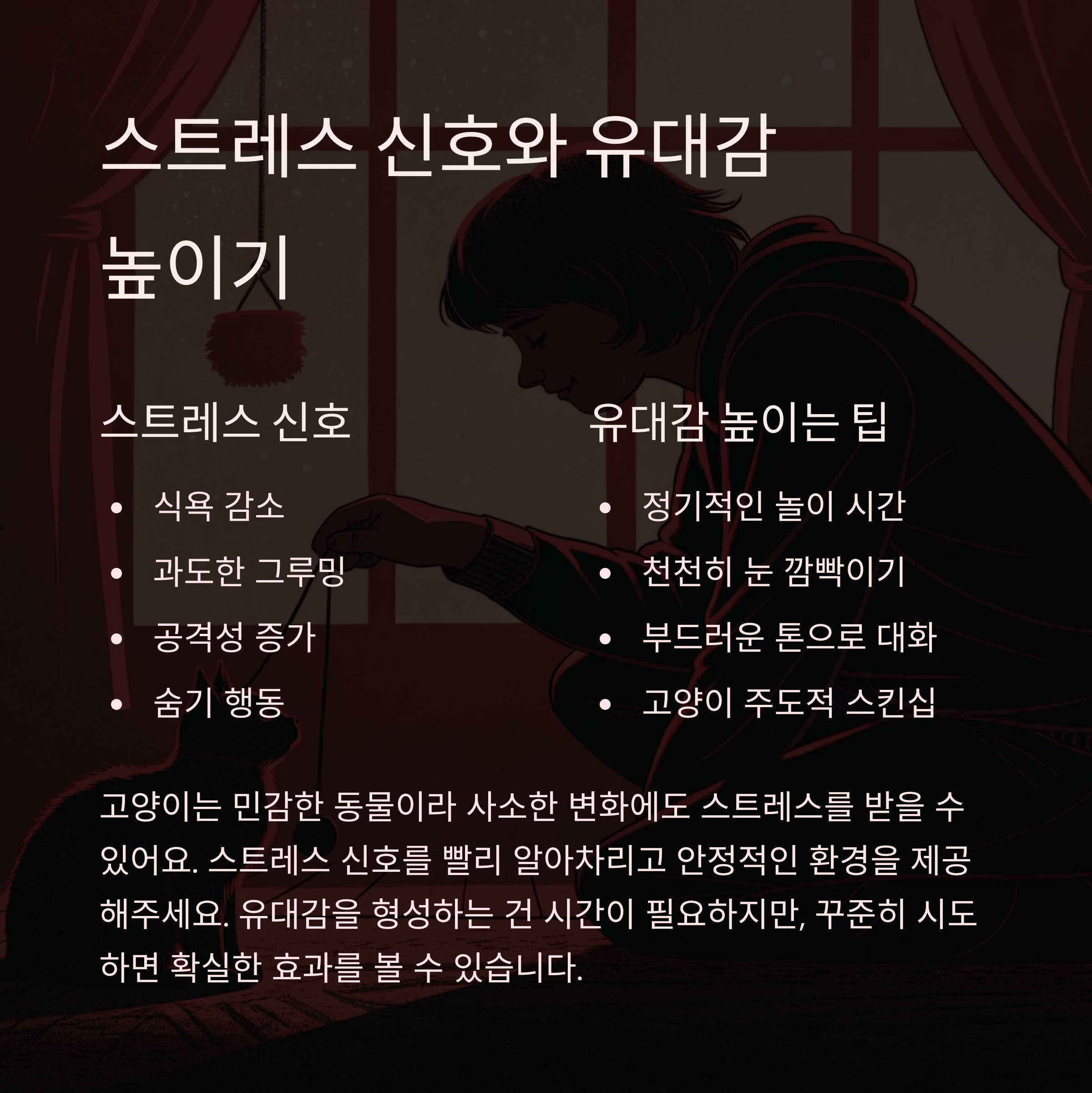 | 고양이 주도적 스킨십 존중 | 자율성과 편안함 증대 |