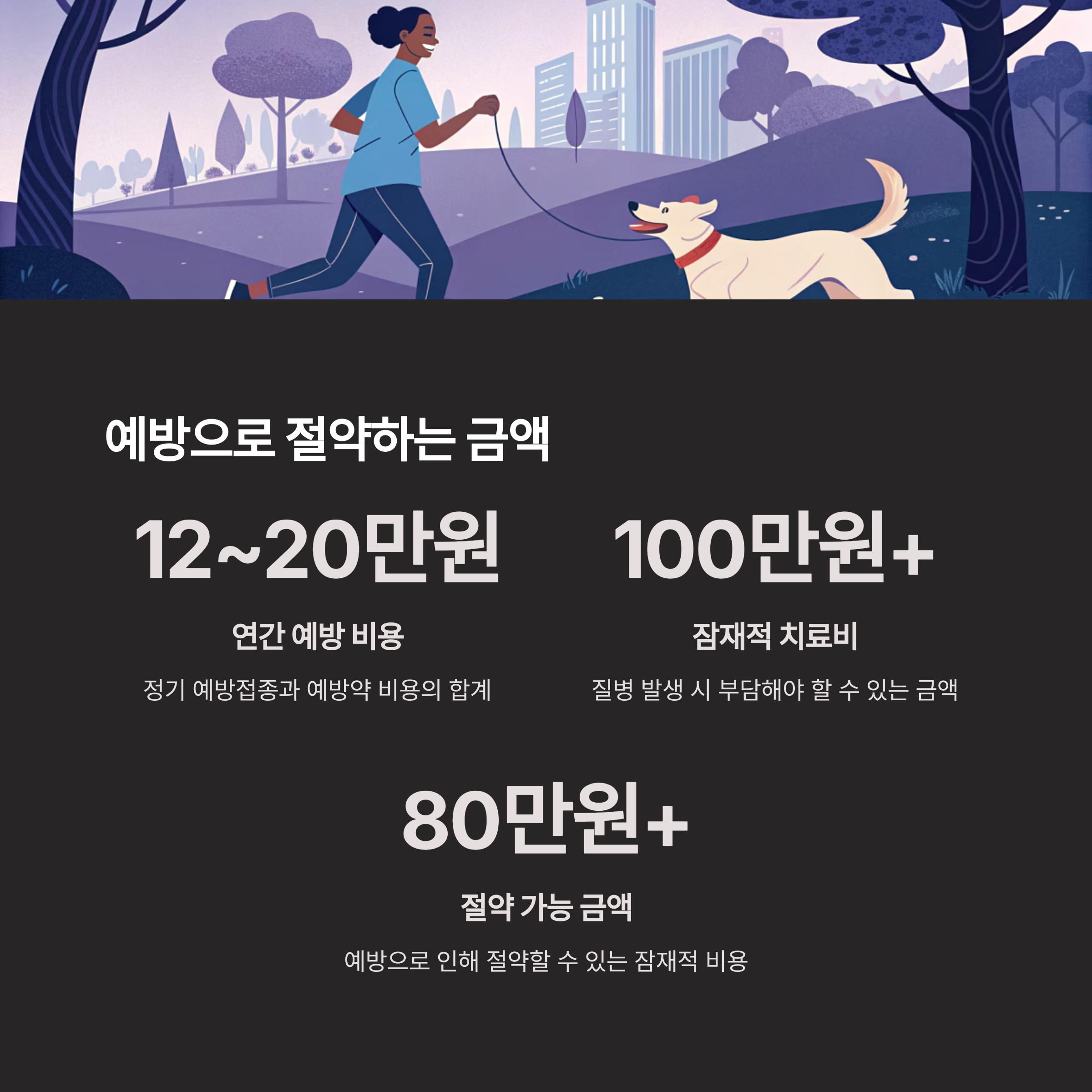 | 심장사상충 예방 | 매달 1회(약 또는 주사) | 6~11월 집중 |