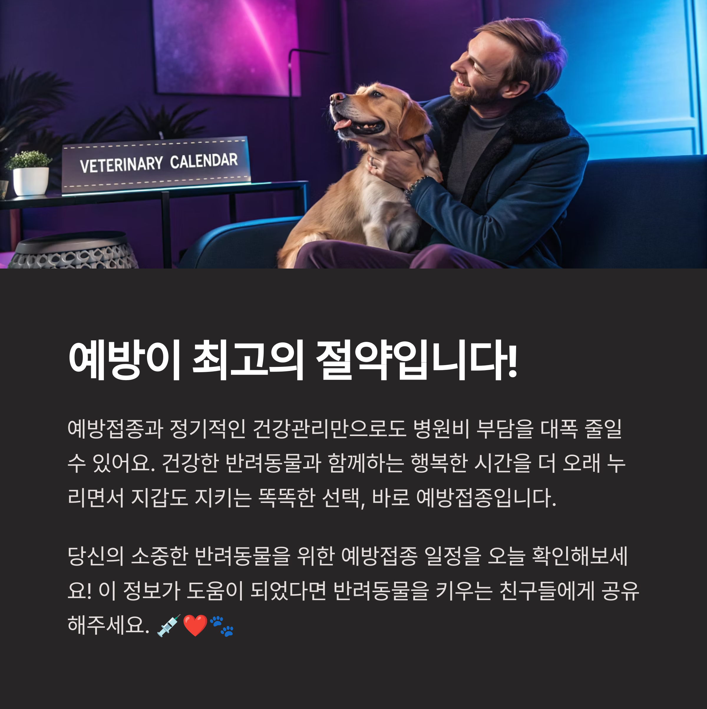 반려동물과의 삶은 매 순간이 사랑스럽고 행복하지만, 건강 문제는 생각보다 큰 비용과 스트레스를 동반해요. 하지만 미리미리 예방하고 정보를 알고 대비하면, 우리 아이들의 건강도 지키고 지갑도 덜 아플 수 있습니다. 이 글을 통해 병원비 걱정 덜고, 반려동물과 더 오래 건강하게 함께 하시길 진심으로 바랄게요. 혹시 여러분만의 팁이 있다면 댓글로 공유해주세요. 함께 더 나은 반려 생활을 만들어가요!