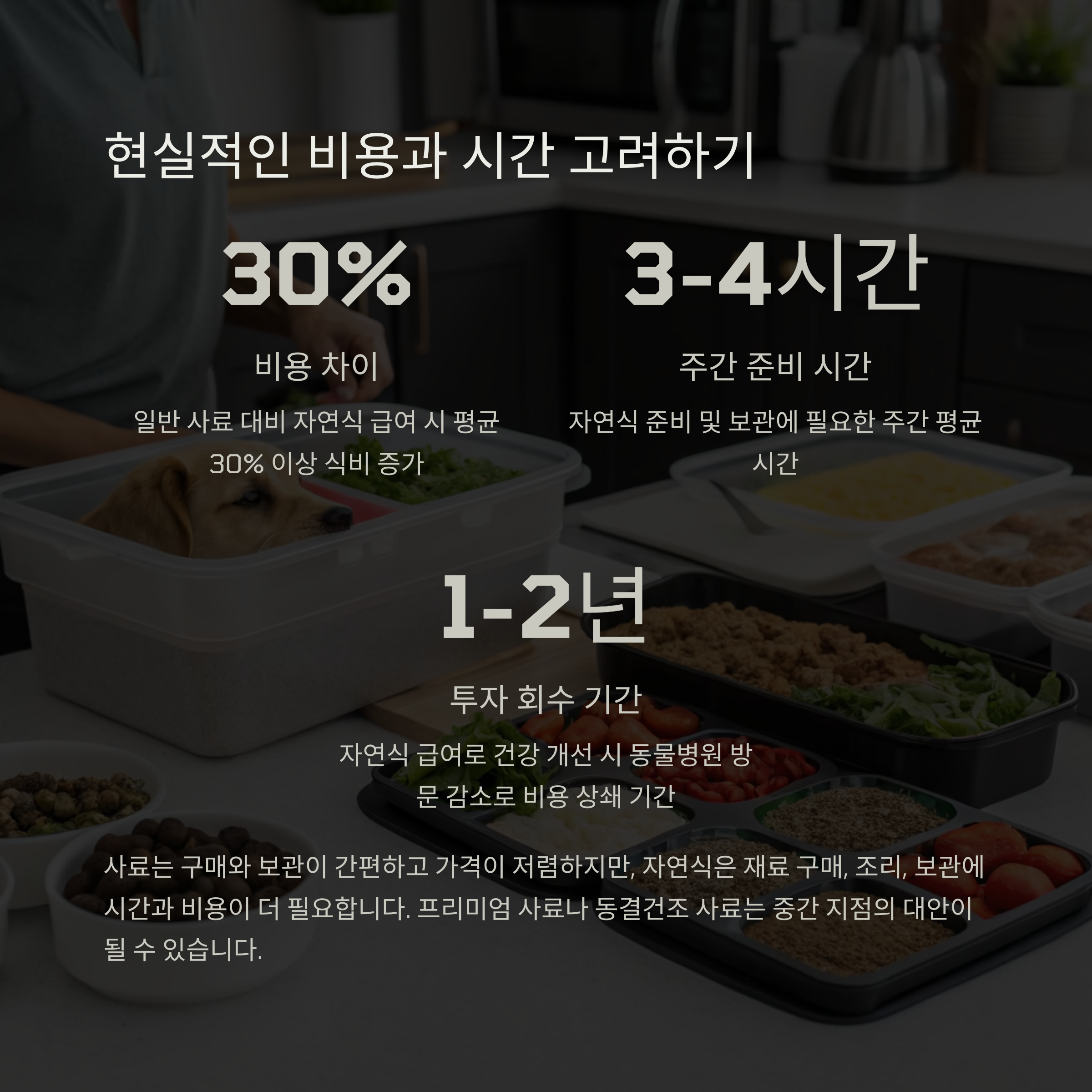 초기에는 비용이 높게 느껴질 수 있지만, 대량 구매나 자가 조리로 효율적으로 조절할 수 있어요. 장기적으로는 병원비를 줄여줄 수도 있구요.