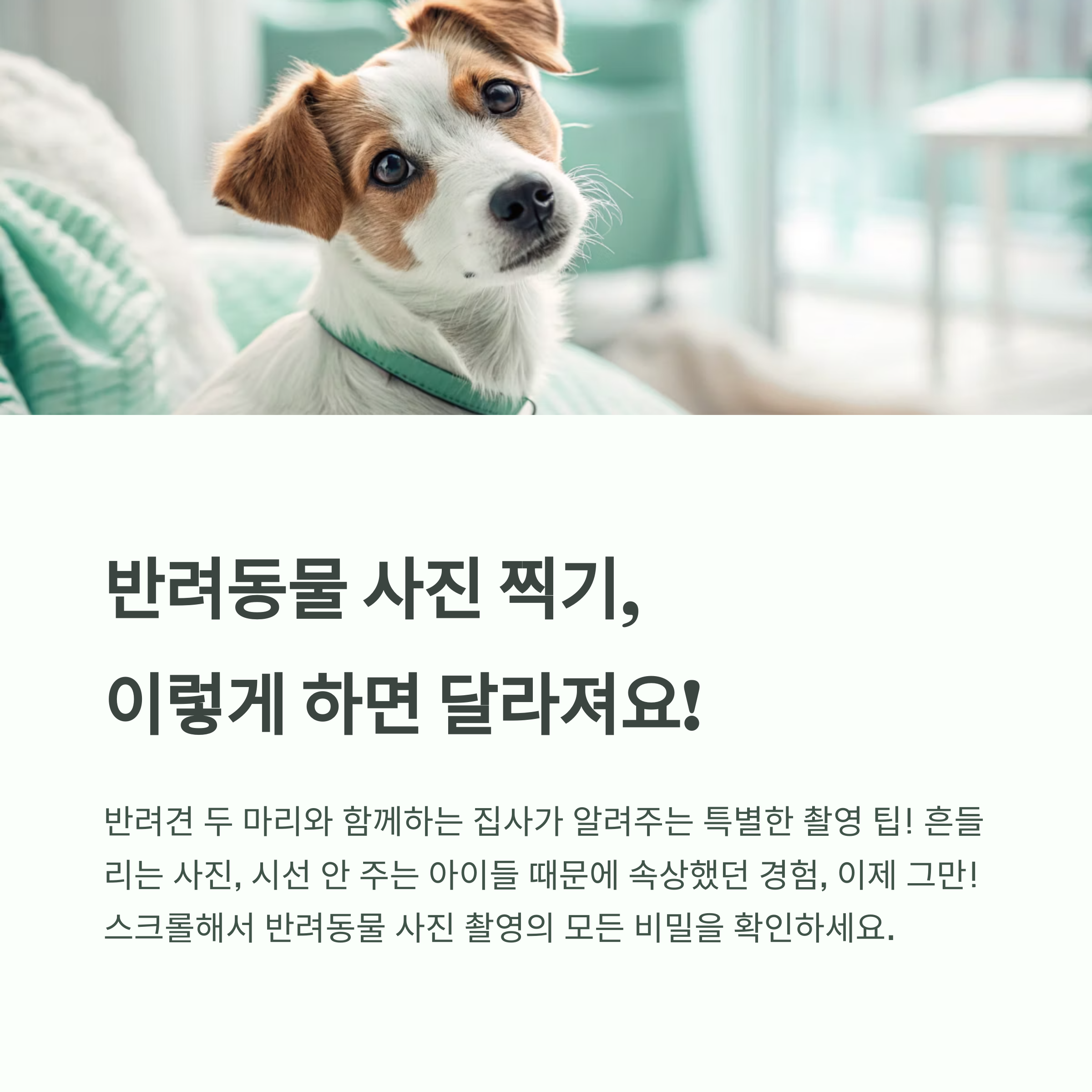 안녕하세요, 여러분! 주말이면 카메라를 들고 산책 나가서 우리 아이들 사진 찍는 게 저만의 소확행이에요. 그런데 처음에는 찍는 족족 흔들리고, 애들이 시선을 안 줘서 속상했던 기억이 많아요. 그래서 오늘은 저처럼 반려동물 사진 촬영이 어려웠던 분들께, 제가 직접 겪고 터득한 ‘반려동물 사진 잘 찍는 방법’을 공유하려고 해요. 📸