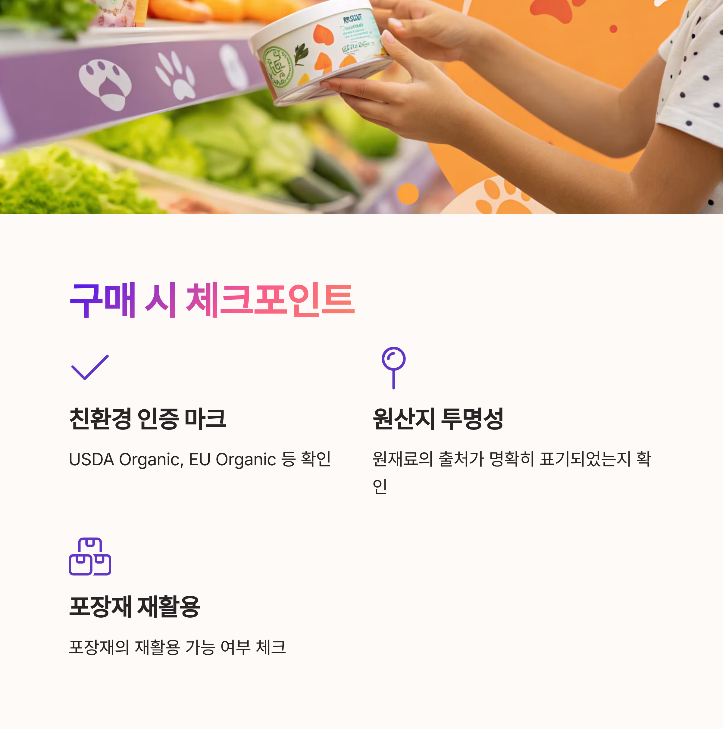 구매할 때 그냥 '친환경'이라는 마케팅 문구만 보고 고르면 아쉬운 경우가 있어요. 꼭 아래 포인트를 확인해보세요!