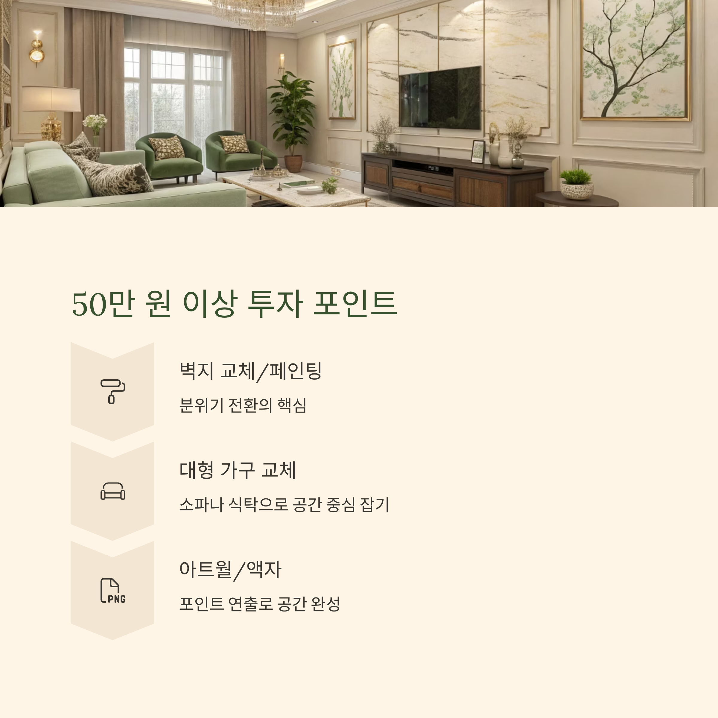 이 두 가지만 바꿔도 “어? 집 달라졌네?” 하는 반응이 나올 거예요. 투자 대비 만족도 최고랍니다!