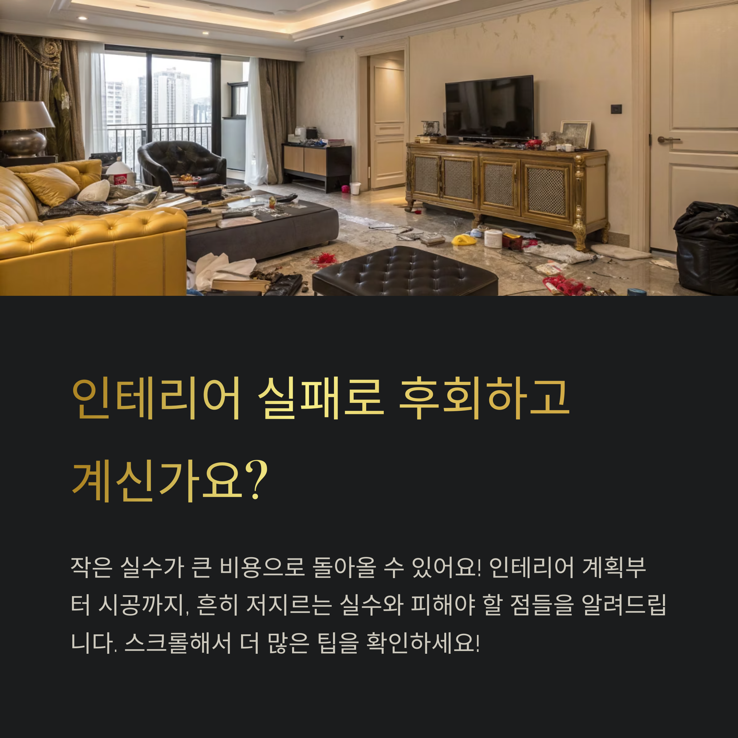 혹시 인테리어 한 번 잘못해서 후회한 적 있지 않으세요? 작은 실수가 큰 비용으로 돌아올 수 있어요!