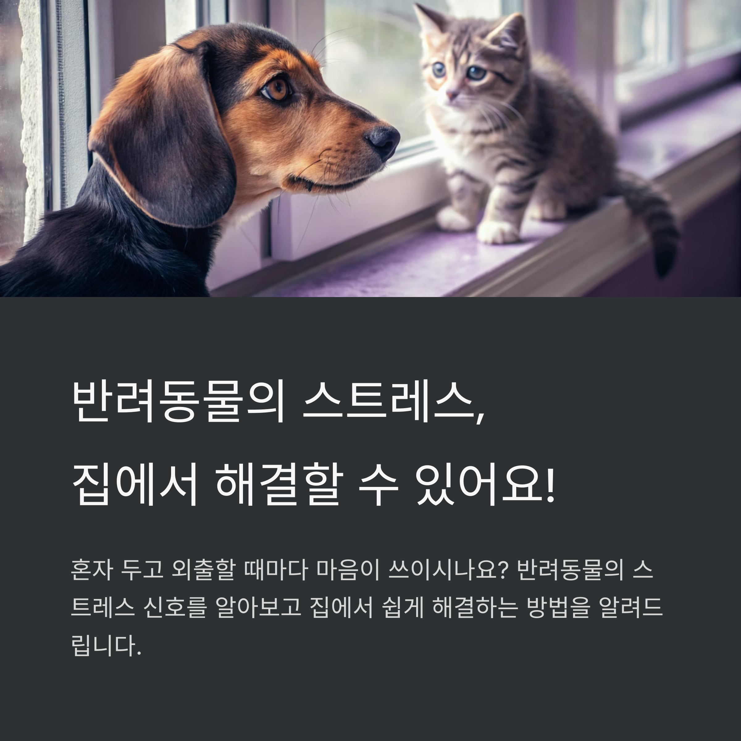 혼자 두고 외출할 때마다 마음이 쓰이시나요? 반려동물의 스트레스, 집에서 충분히 케어할 수 있어요.