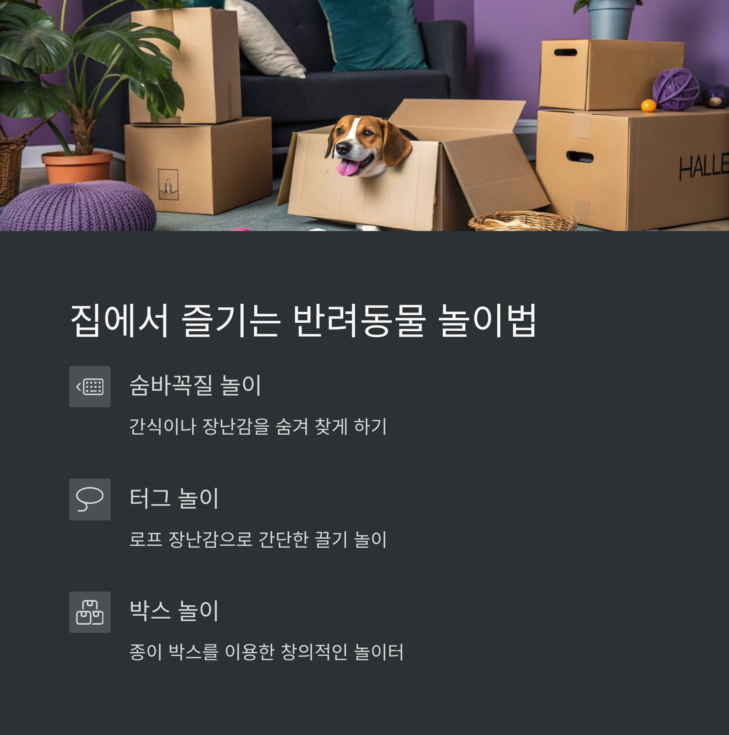 - 박스 놀이: 종이 박스를 이용해 놀이터처럼 활용