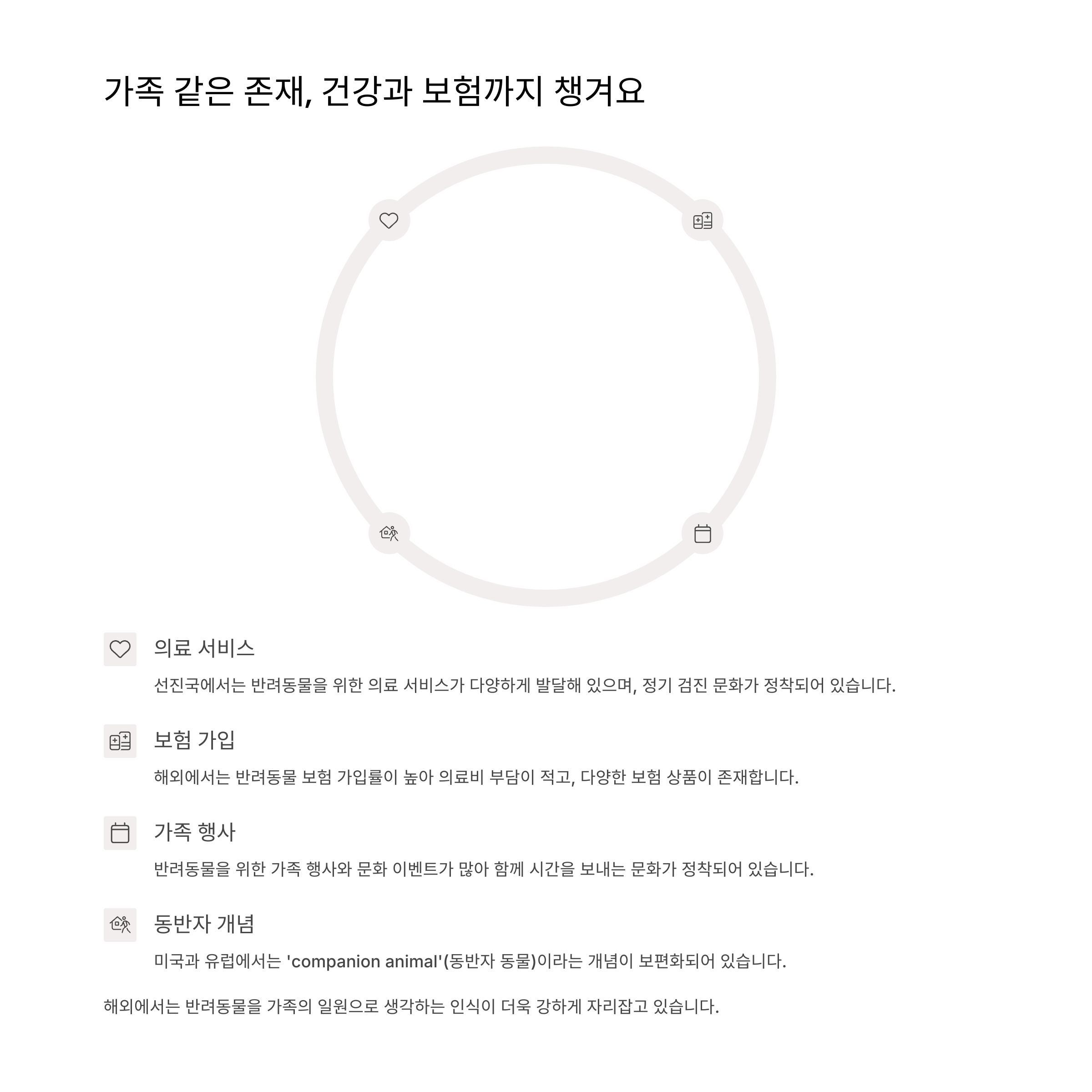 해외의 반려동물 문화, 정말 신기하고 배울 점도 많죠? 글을 쓰면서 저 역시 놀라고 감탄한 부분이 많았어요. 이제는 단순히 '귀여운 존재'를 넘어, 함께 살아가는 '진짜 가족'으로 반려동물을 대하는 태도가 중요하다는 걸 느낍니다. 우리도 조금씩 달라지고 있는 만큼, 앞으로 더 따뜻한 반려문화가 자리 잡길 바라며, 여러분도 여러분만의 특별한 반려문화 이야기를 들려주세요! 😊